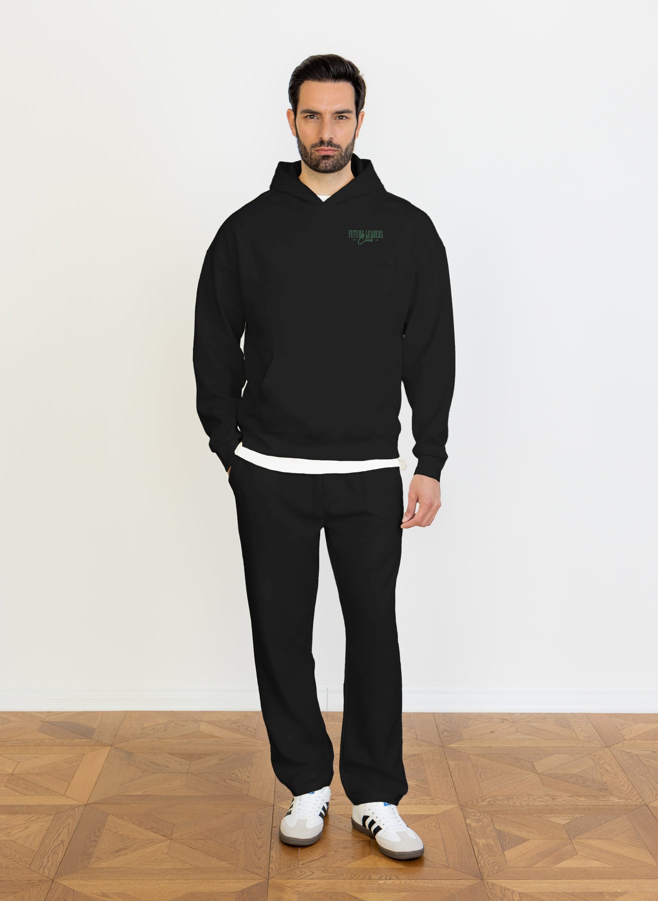 Men’s midweight hoodie featuring minimal slogan print and relaxed comfort.