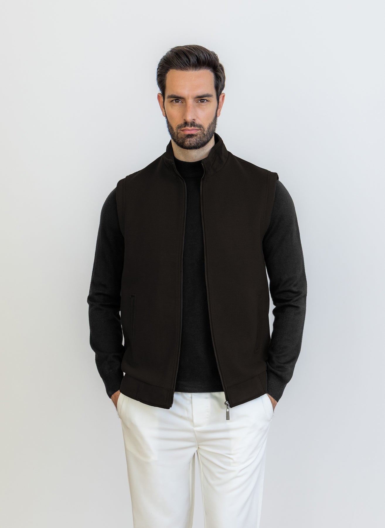 Modern textured gilet designed for sleek layering, comfort, and understated contemporary style.