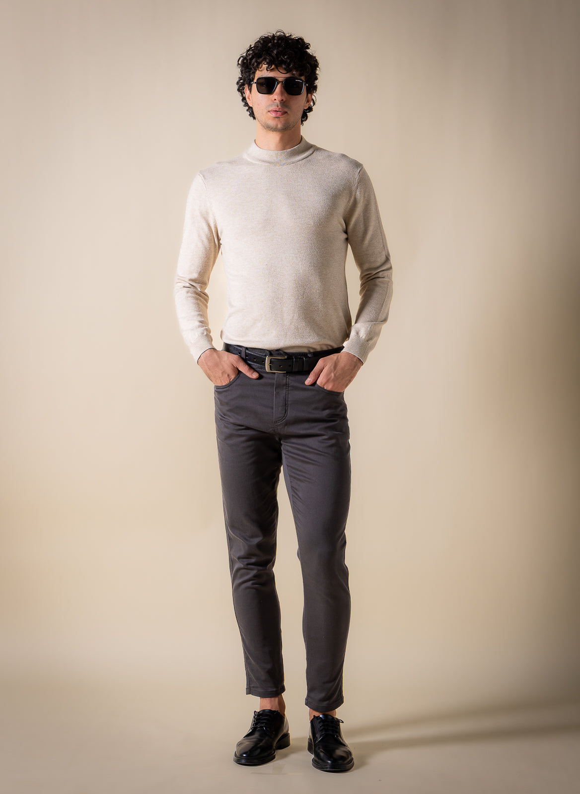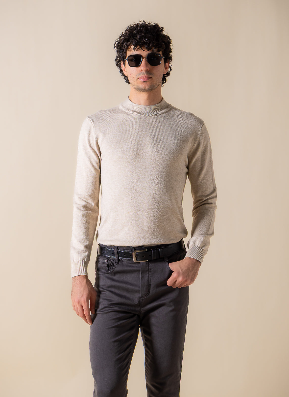 Premium fine knit construction with a sleek mock-neck for modern sophistication