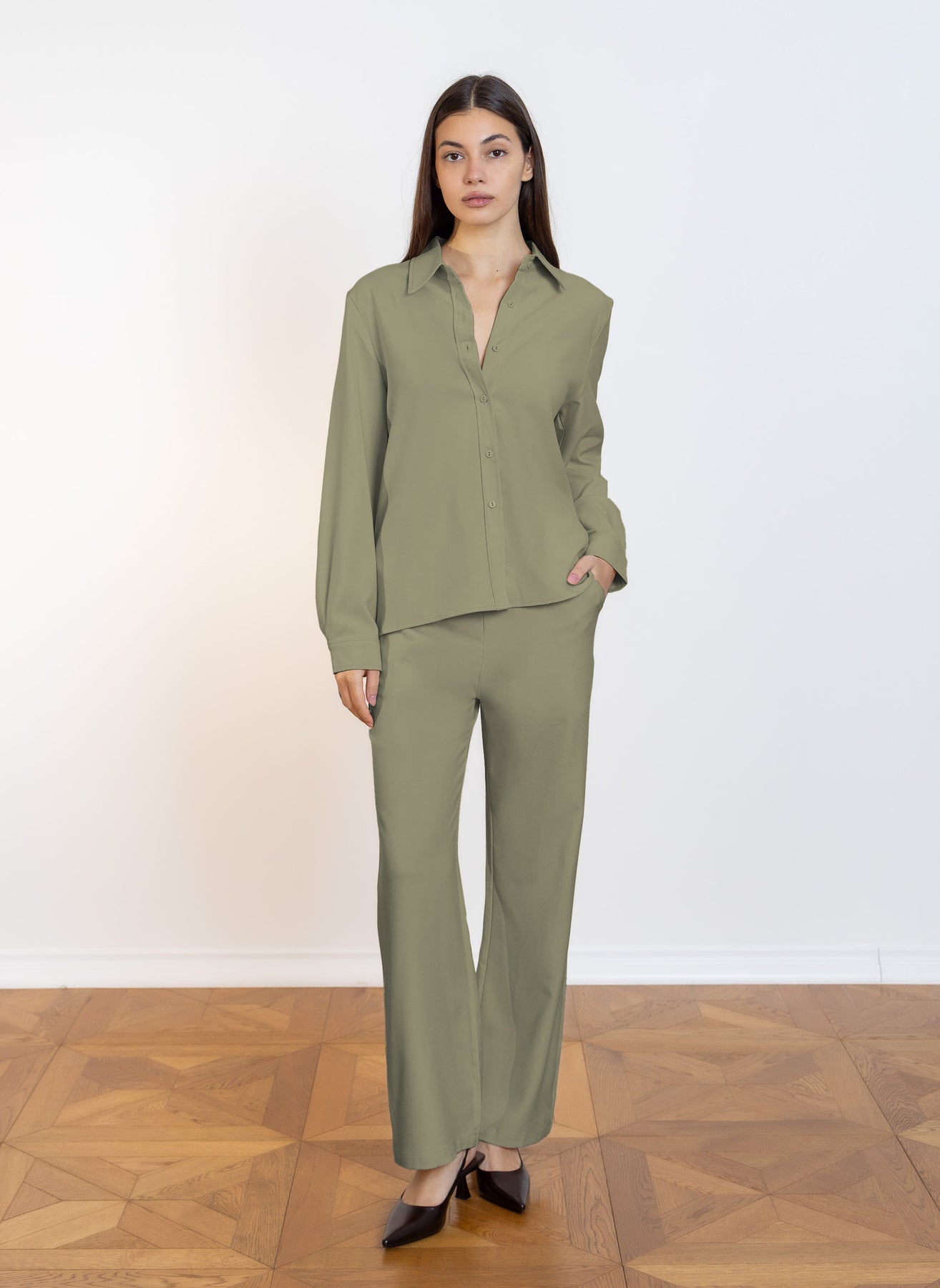 Elegant women’s co-ord set featuring a classic shirt and matching trousers.