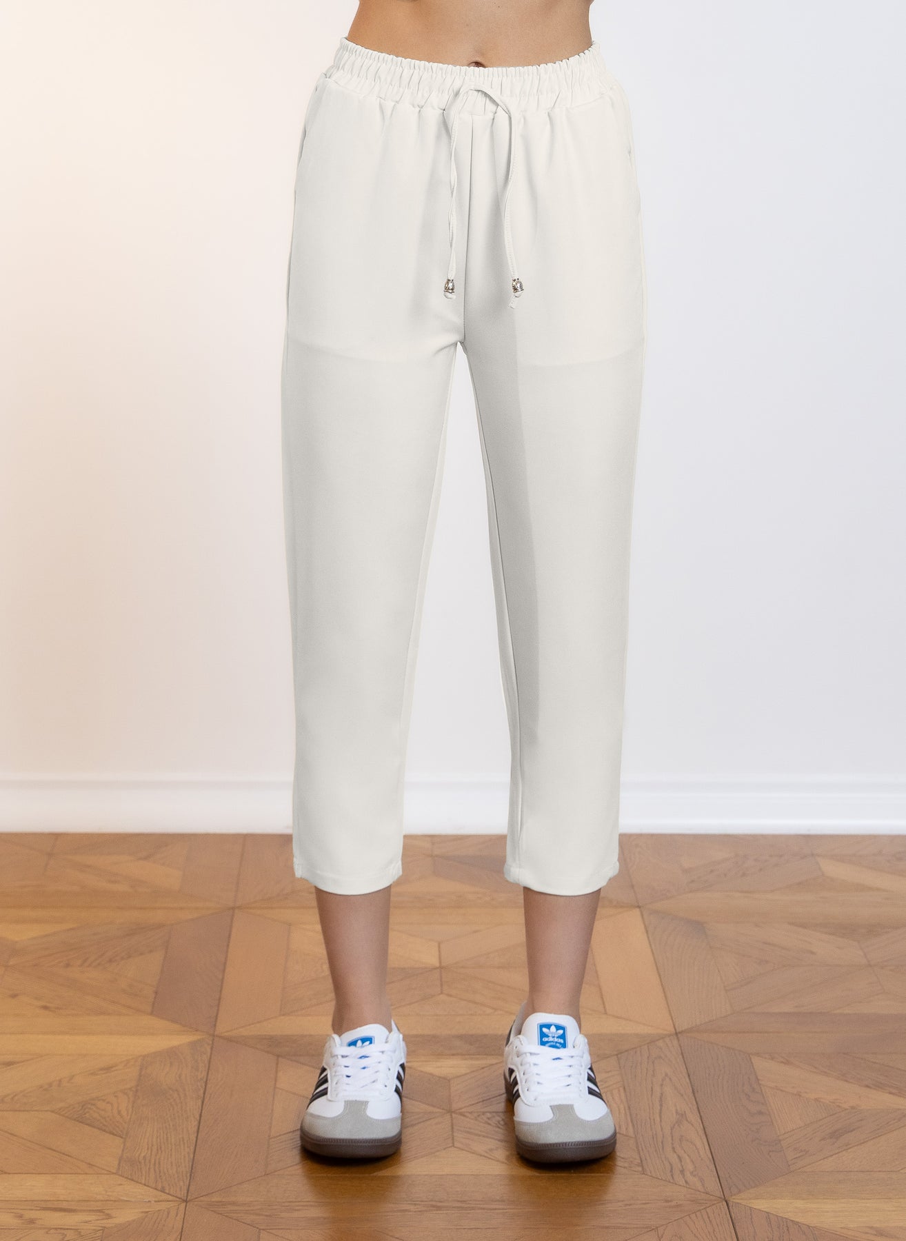 Comfort-fit slim cropped trousers designed for effortless everyday wear and ease.