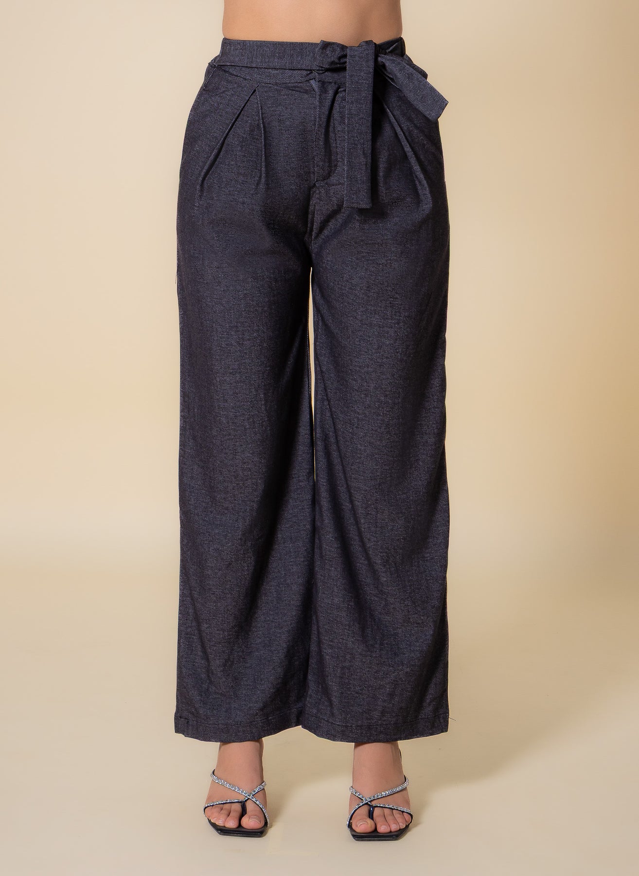 Step into effortless style and comfort with the Textured Belted Wide-Leg Trousers.