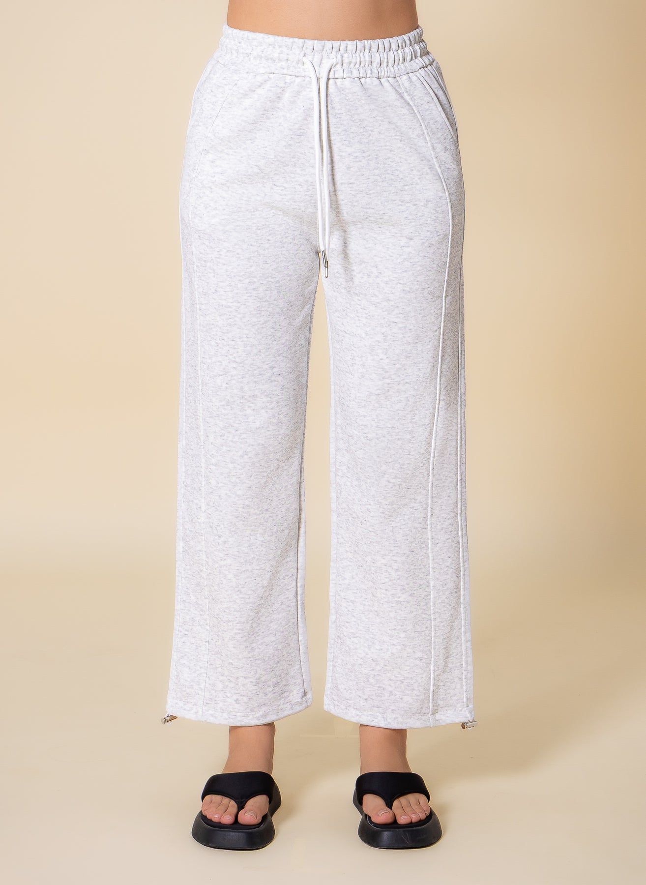 Discover the perfect combination of comfort and style with the Wide Leg Plush Comfort Trousers. This new design features an elastic and adjustable waistband, convenient side pockets, and adjustable ankle bottoms, providing a customizable fit and a modern, relaxed silhouette ideal for everyday wear.