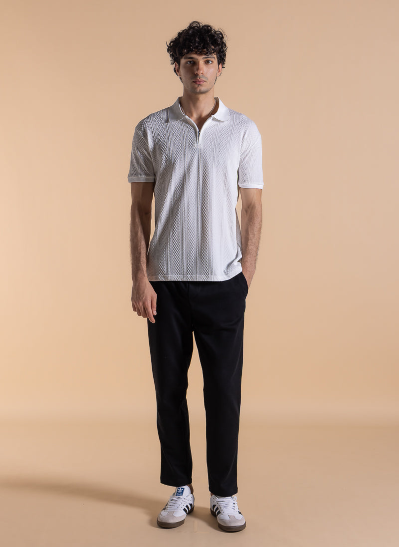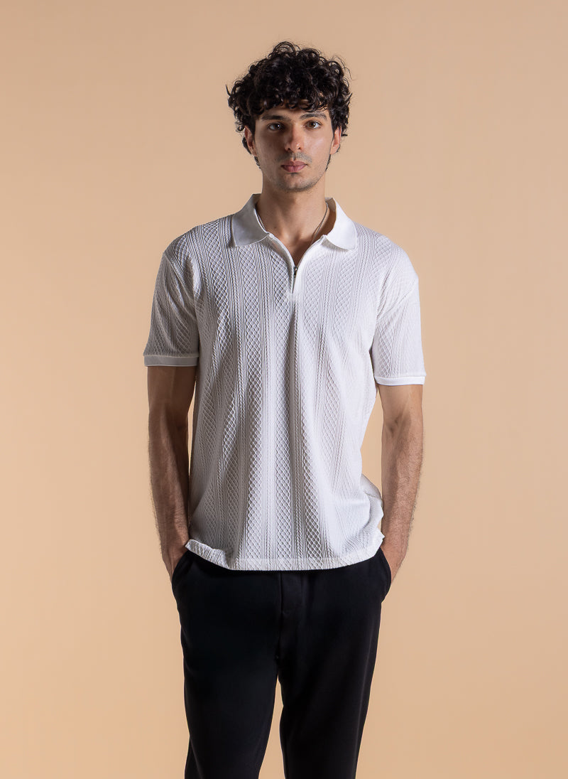 The Textured Polo Shirt combines stylish design with the comfort of elastic sleeves for a flexible, secure fit. This new piece offers a modern texture that enhances your look while ensuring all-day ease, making it a reliable and versatile addition to your wardrobe.