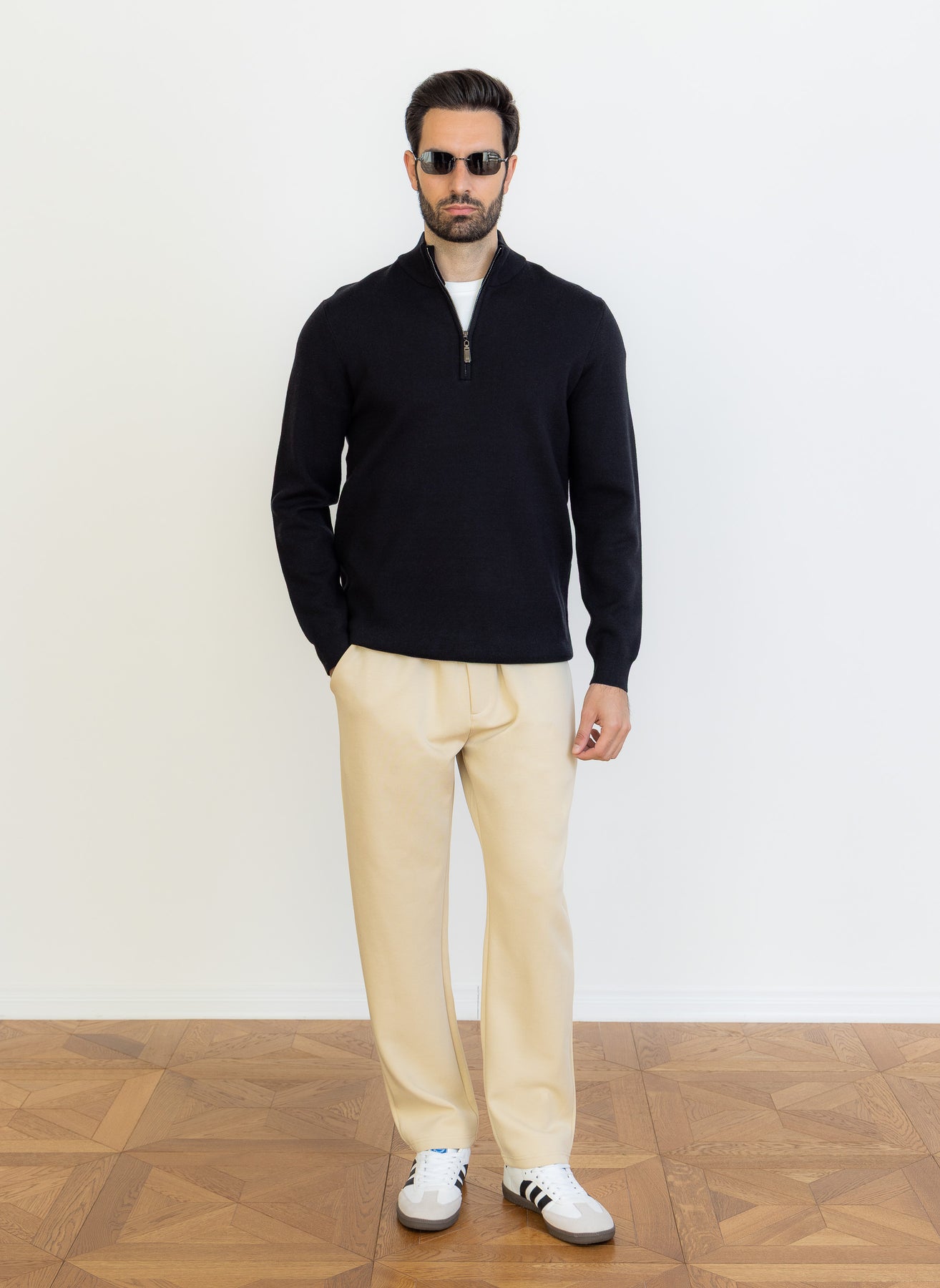 The model is 189cm tall and wears size 34 for bottoms