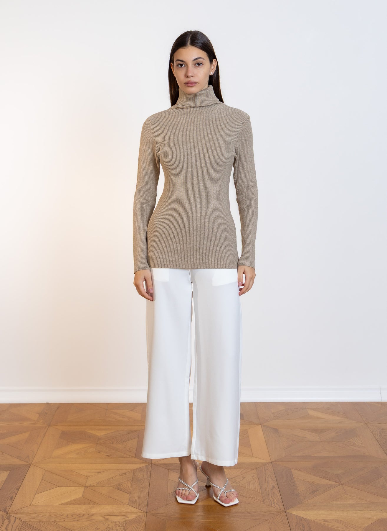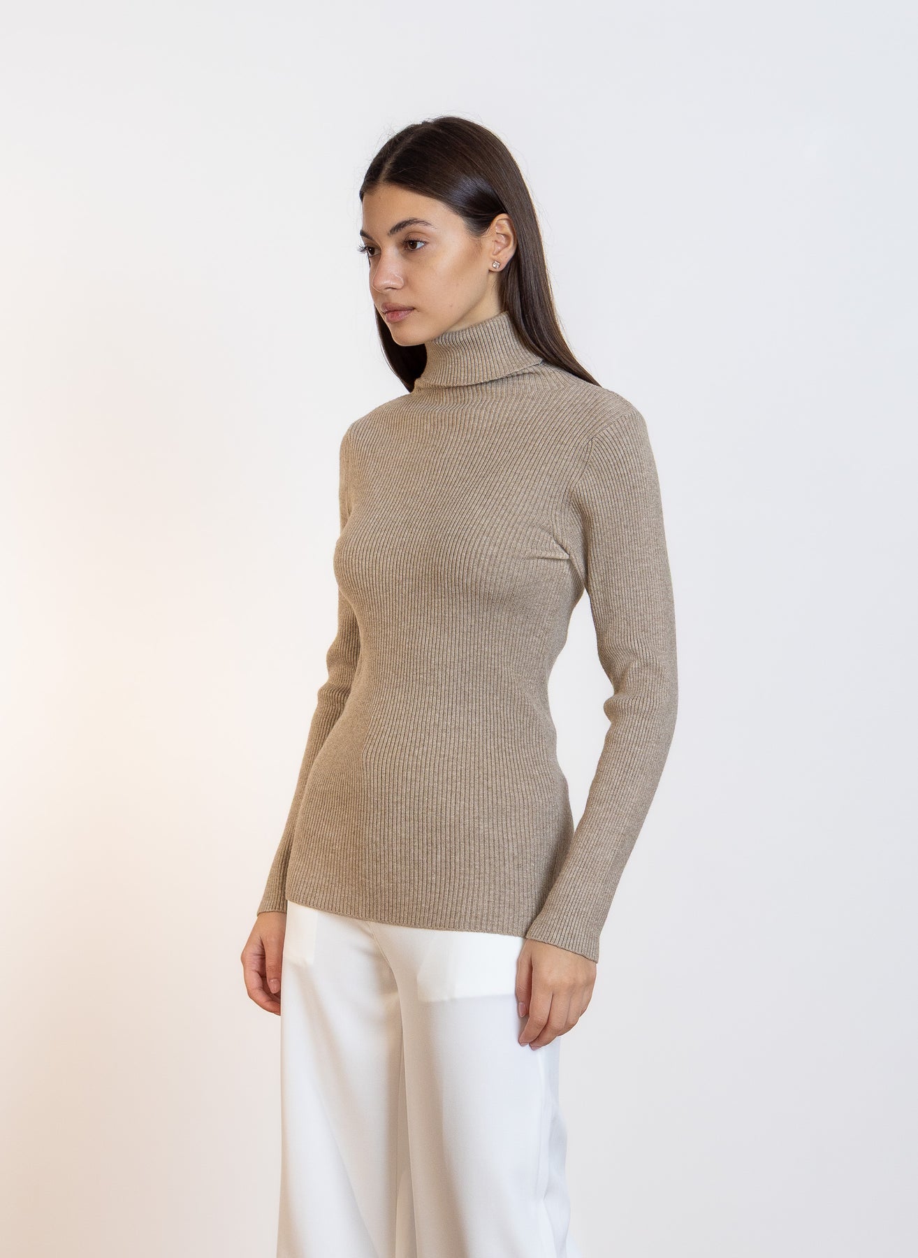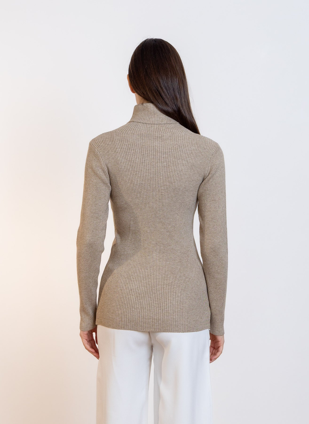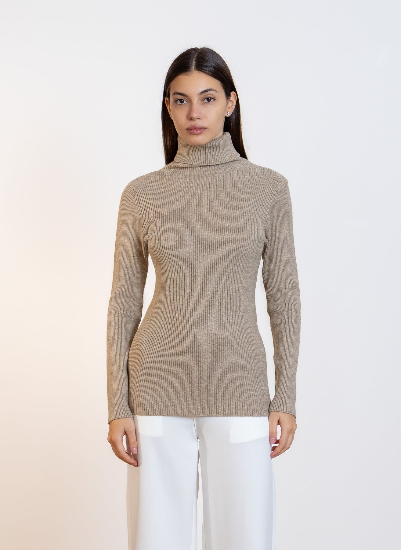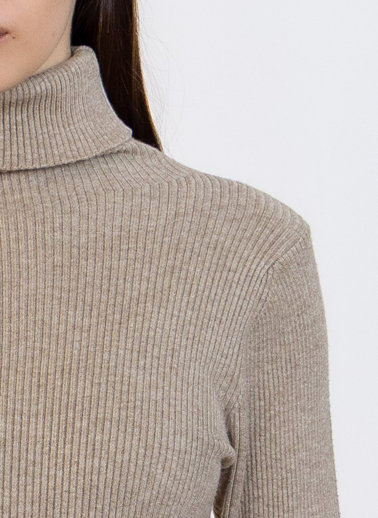Ribbed high-neck long sleeve top with a sleek, body-skimming fit for effortless everyday elegance.