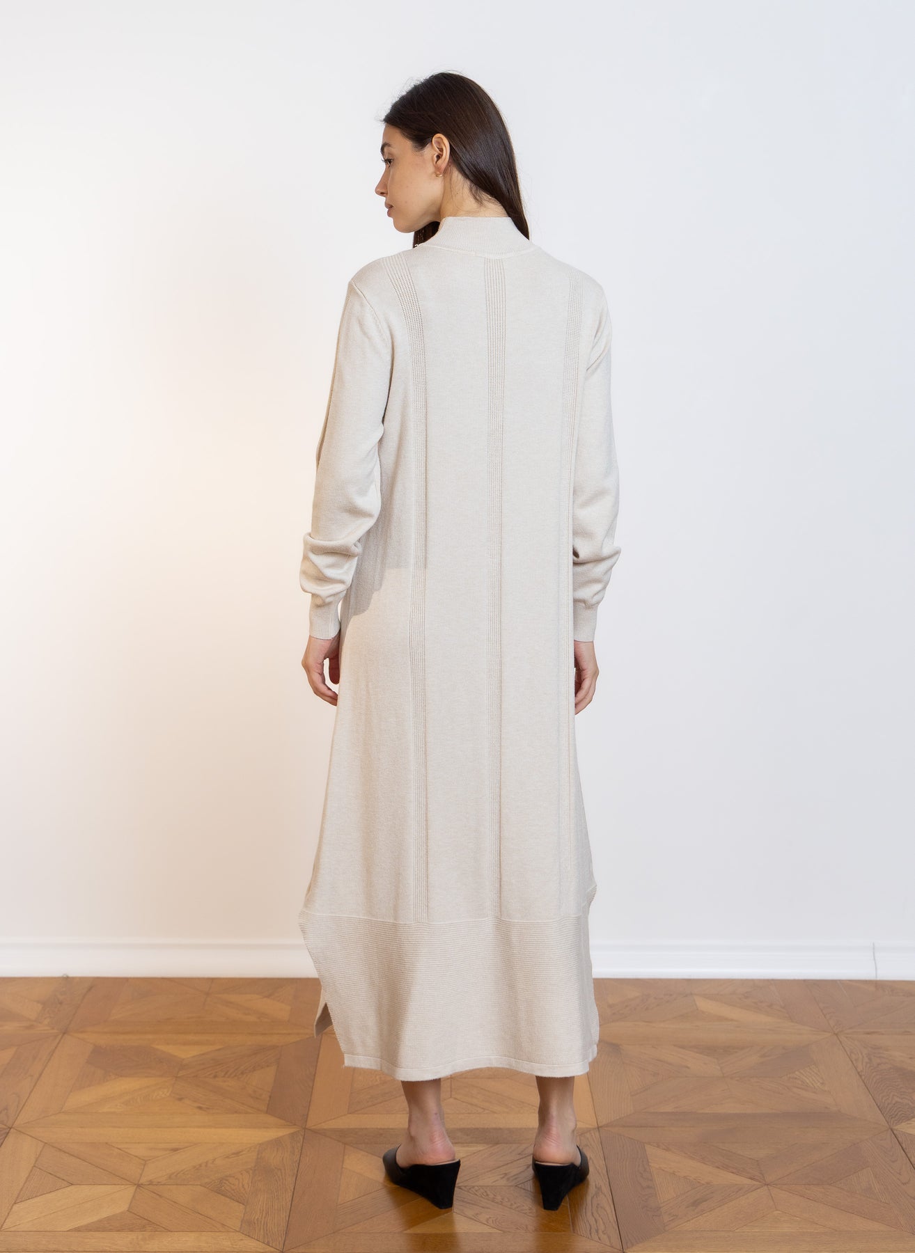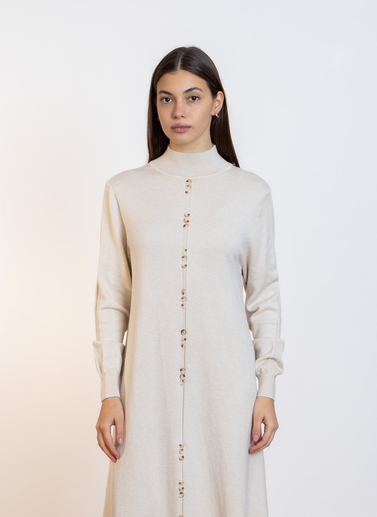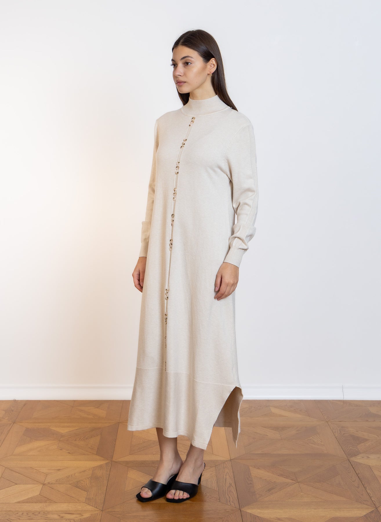 Fine knit maxi dress with a sleek button-down front and graceful flow