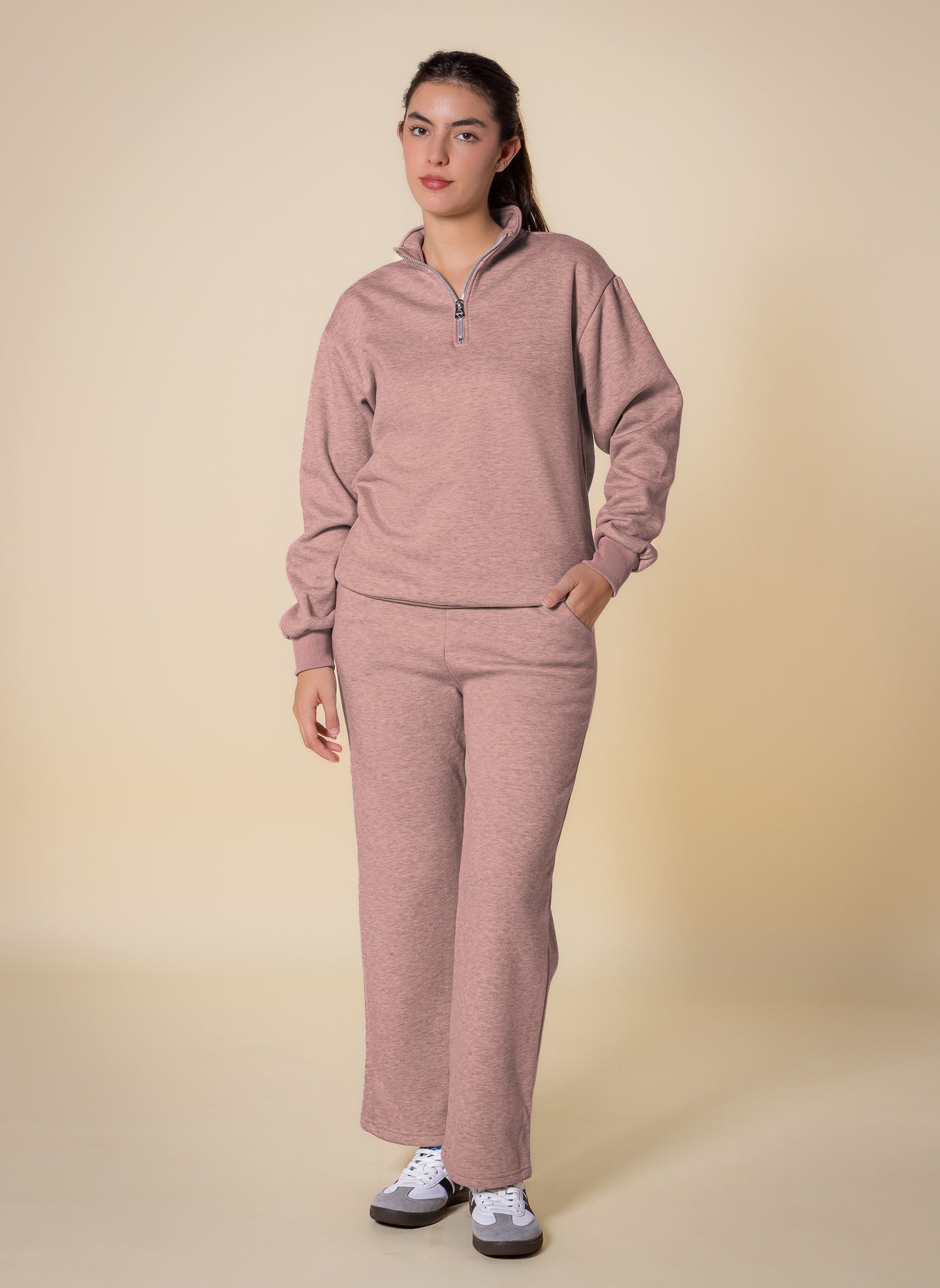 TEXTURED QUATER-ZIP SWEATER SET