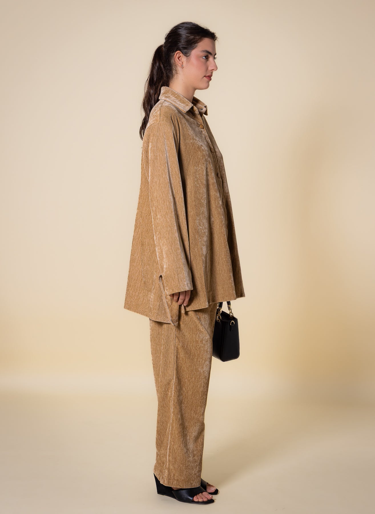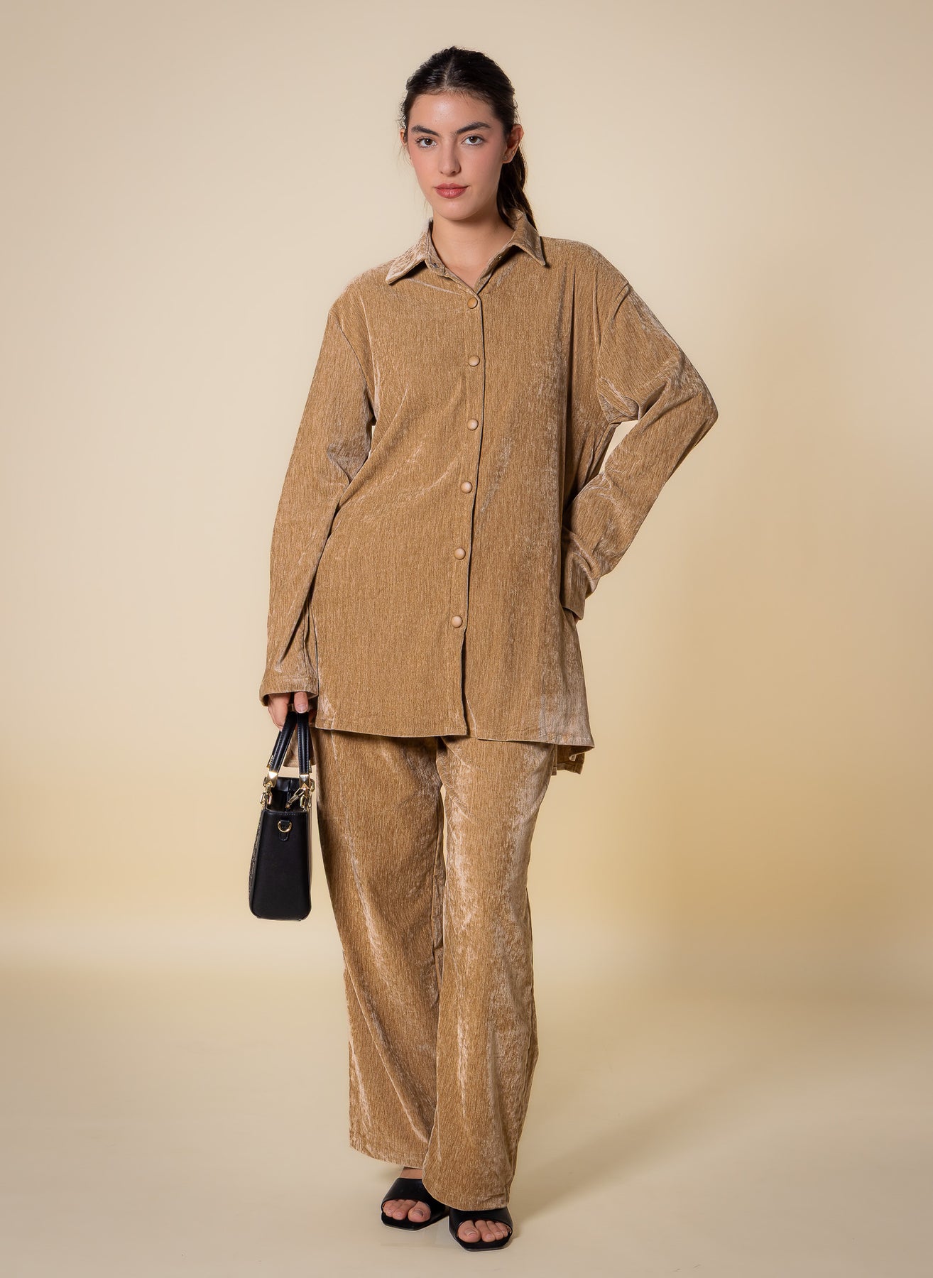 TEXTURED VELVET SHIRT SET