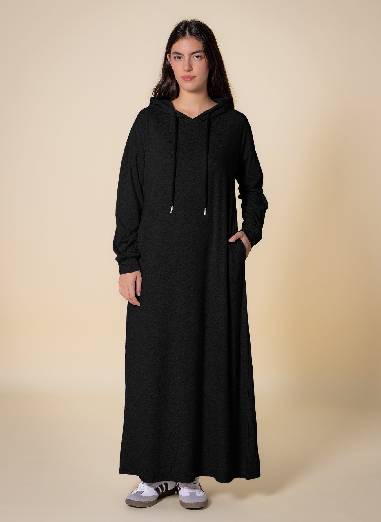 The new Ladies Long Dress with Hoodie offers a perfect blend of style and comfort.