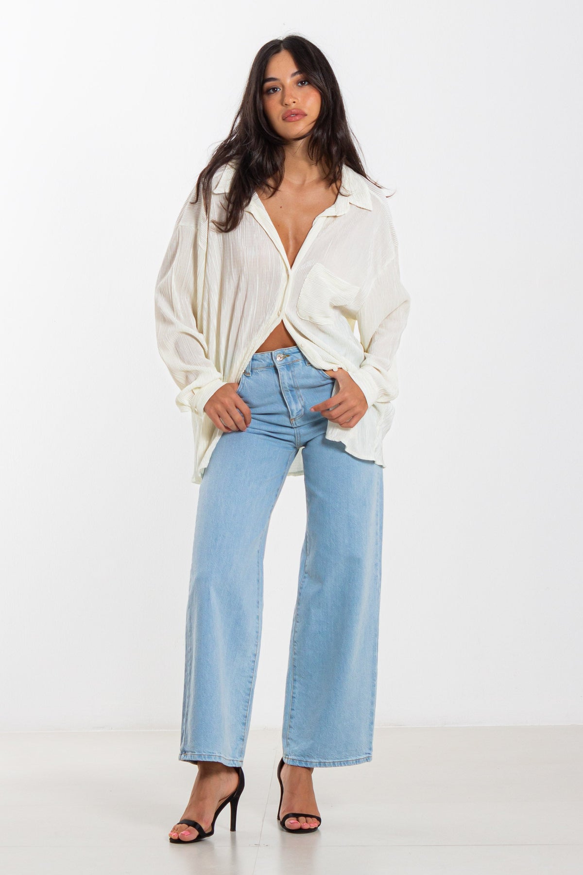 Make a statement with this PLEATED OVERSIZED SATIN SHIRT.