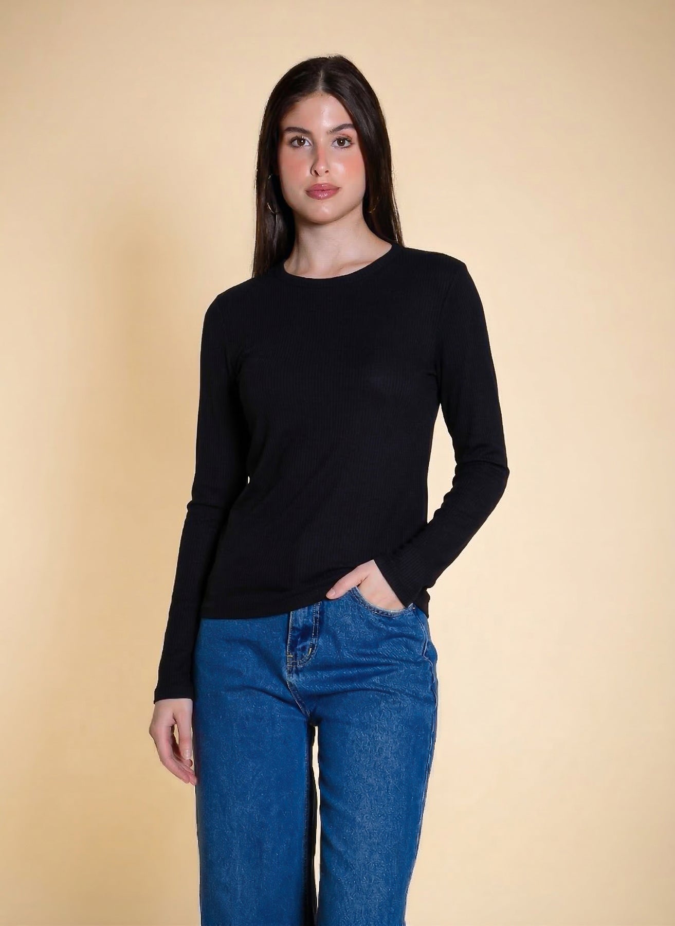 A slim-fit long sleeve T-shirt in soft, breathable cotton for comfortable, everyday wear with a sleek look.